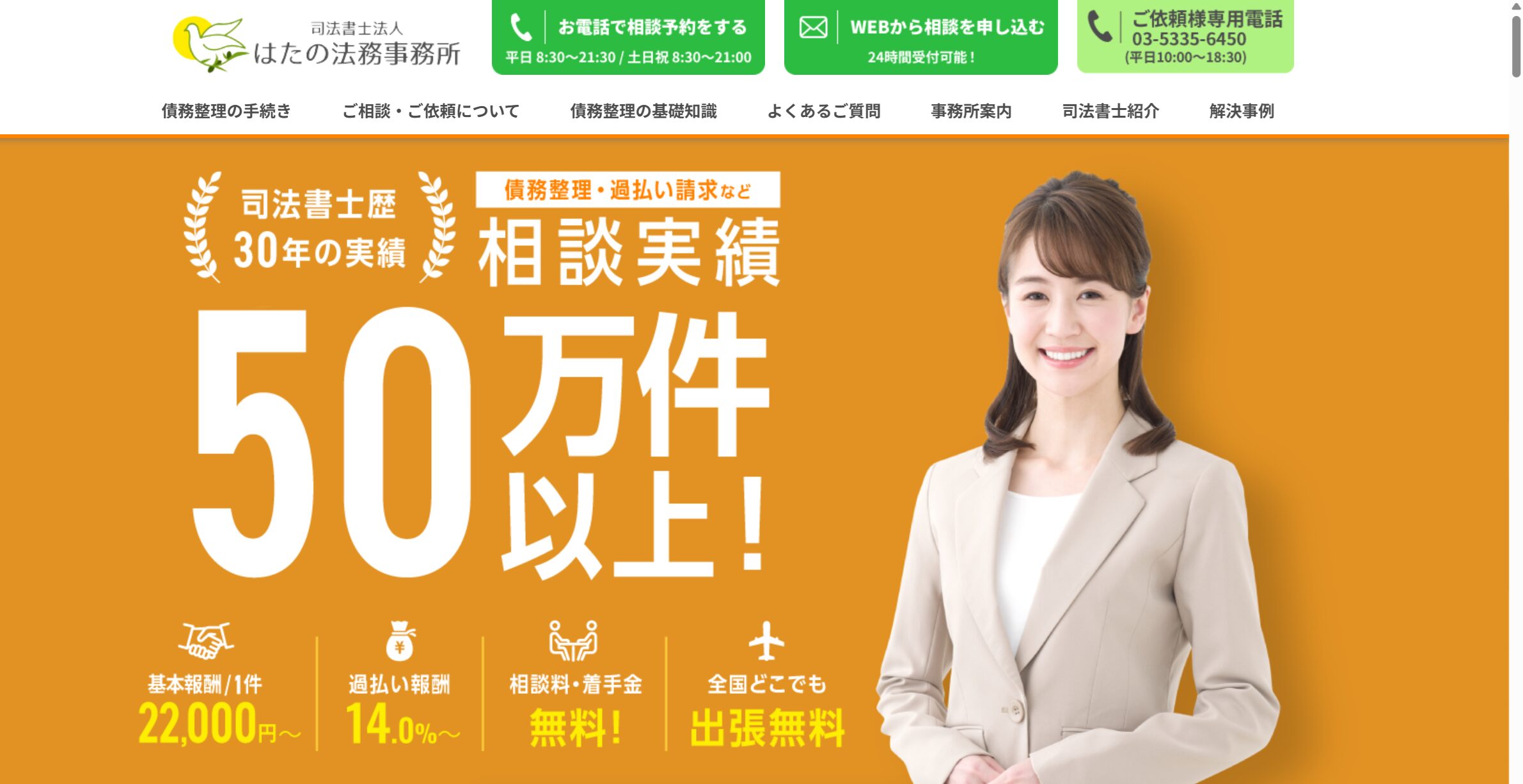 初期費用を徹底的に抑えたい方は、はたの法務事務所(相談料・着手金ともに無料)がおすすめ。