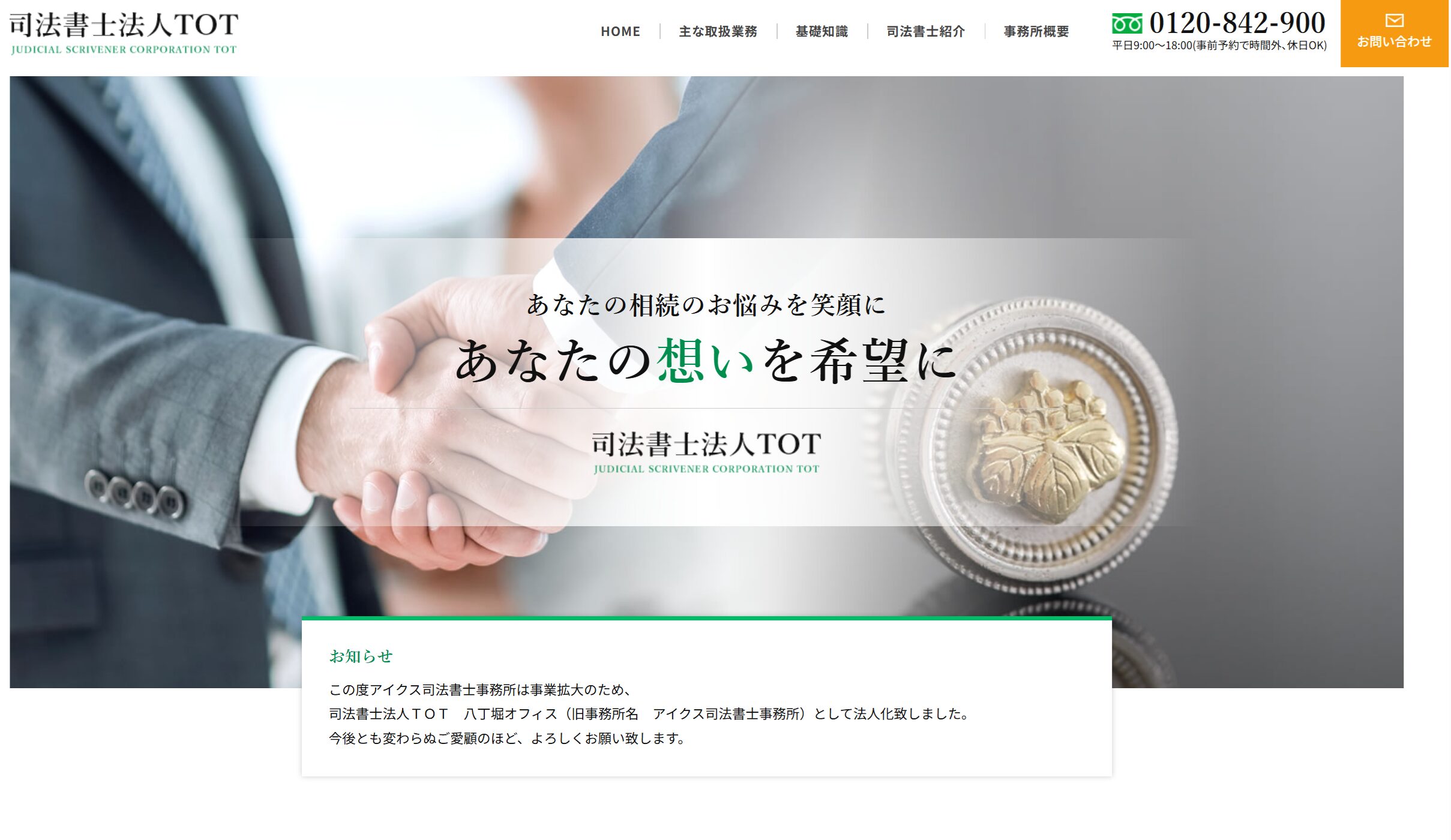 司法書士法人 TOT![]() | 司法書士 | 有(相談無料) | 20,000円〜(記載例) | ○(案内あり) | 明記なし |