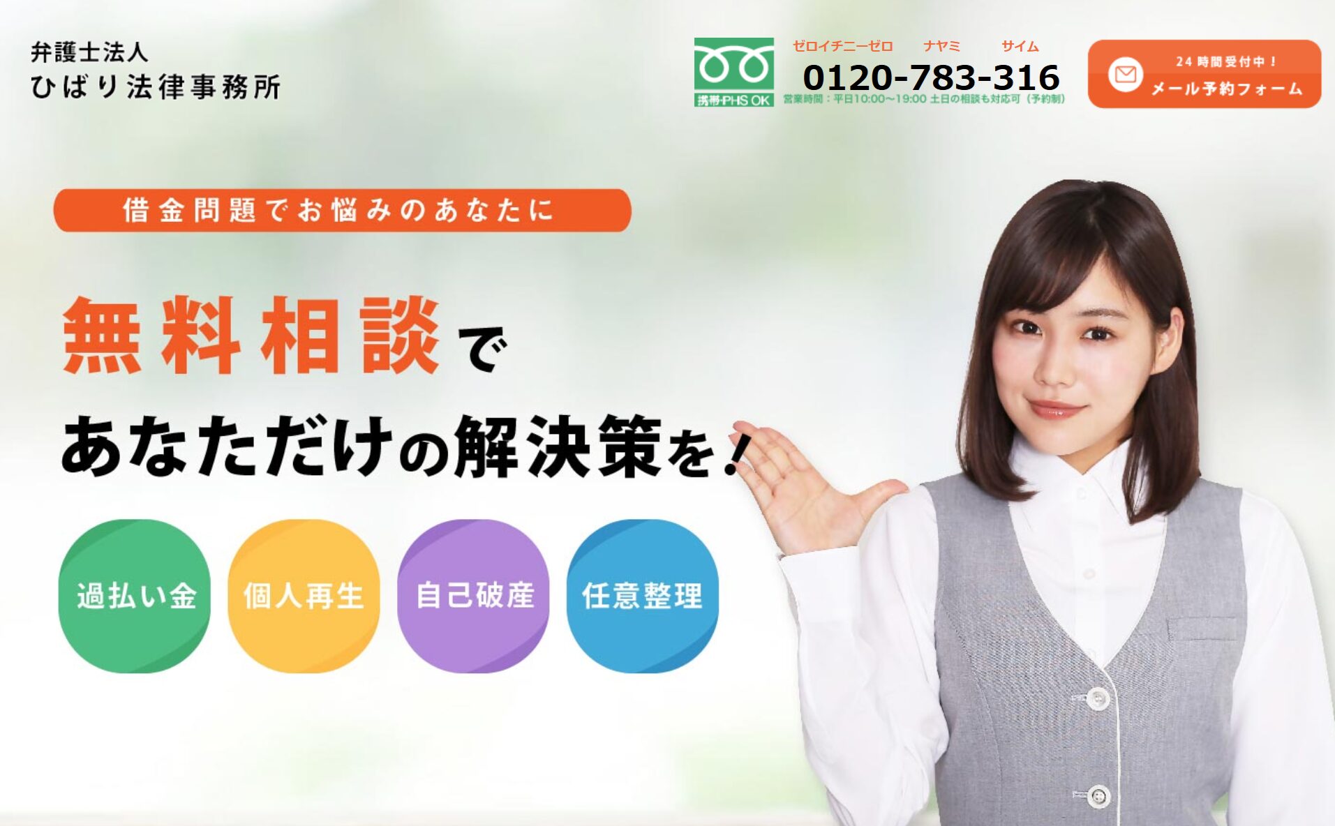 ひばり法律事務所![]() | 弁護士 | 有(相談無料) | 22,000円/1社(任意整理目安) | ○(全国対応の案内あり) | 有(女性弁護士在籍、予約で対応) |