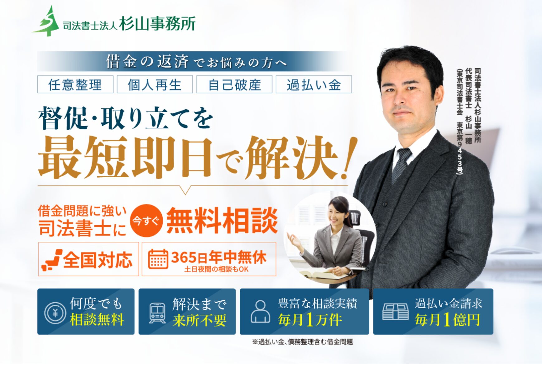 司法書士法人 杉山事務所![]() | 司法書士 | 有(相談料・着手金 無料表記) | 0円(着手金0円表記あり) | ○(全国/拠点多数) | 明記なし |